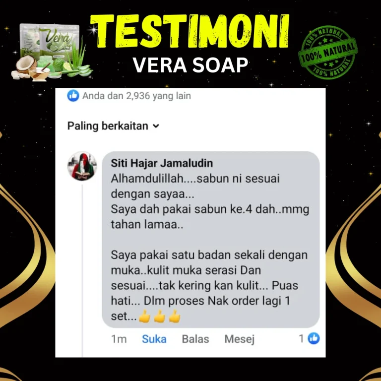 Jika digunakan 3 kali sehari. 1 sabun vera bertahan selama 2 minggu